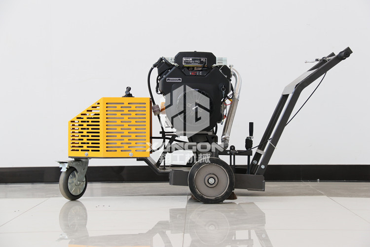 路面開槽機是由動力強勁的發(fā)動機作為動力源,通過三角帶帶動主軸高速旋轉,手搖升降手輪使主軸下降,切割裂縫,前行走輪采用萬向輪,使整機在工作中可以按照裂縫自然形成的曲線進行切槽,裝有匹配的風扇頁還可以用做開槽后對槽里灰塵的清理,實現(xiàn)一機多用的目的。