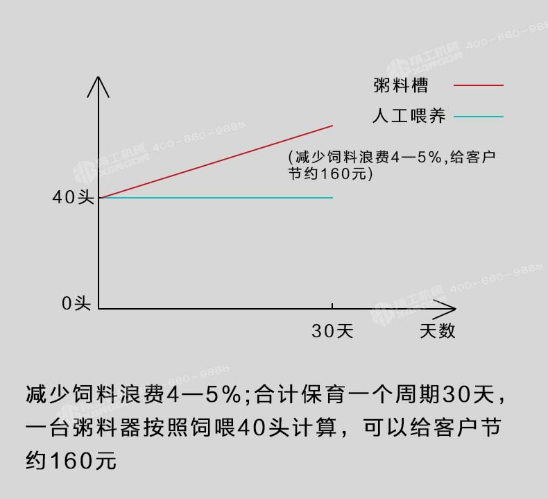 即便按照三個(gè)好處累加保育一次可以節(jié)約560元,一年按照使用粥料器保育6—8窩仔豬,累加一臺(tái)粥料器智能豬料槽通過在豬場的試驗(yàn)得出驗(yàn)證,解決了飼料轉(zhuǎn)化率,豬通過食料相比之前的飼喂每天多增重0.4斤,減少和杜絕了胃腸道病的發(fā)生幾率。合理采食的同時(shí)減少了飼料的浪費(fèi),省料即是省錢,普通的飼喂飼料浪費(fèi)率在5%-10%,豬場中使用了粥料器后飼料浪費(fèi)率控制在2%左右。減少人員的勞動(dòng)強(qiáng)度,夜晚無法定量投喂的問題。