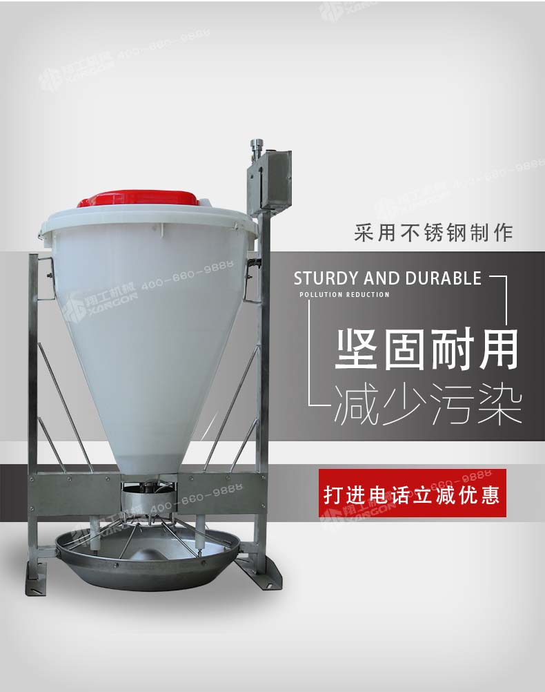 4.智能料槽,粥料器,采用微電腦控制,感應(yīng)式下料,做到無人值守式自動(dòng)飼喂。核心控制部件采用模塊式,灌注膠全密封,防水防塵,經(jīng)久耐用,而且更換方便。